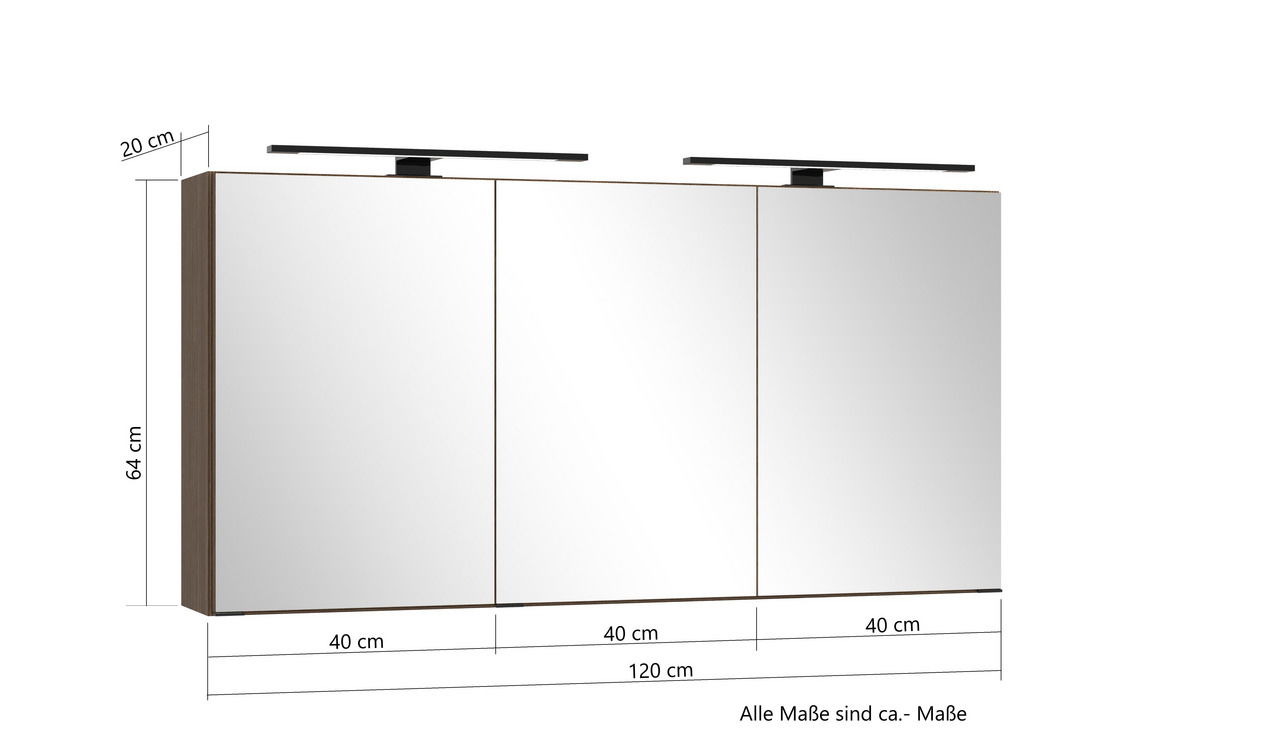 Modern und Stilvoll - Der XORA Spiegelschrank SHEFFIELD in Eichenoptik überzeugt durch sein modernes Design und seine praktische Funktionalität. Mit einer Breite von 120 cm und einer Höhe von 64 cm bietet der Schrank ausreichend Platz für all Ihre Badezimmerutensilien. Der Korpus in Cannello Eichen Nachbildung wirkt besonders edel und fügt sich nahtlos in jedes Badezimmerambiente ein. Die sechs Fachböden aus Glas sorgen für Ordnung und Übersicht.