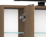 Der moderne XORA Spiegelschrank SHEFFIELD überzeugt durch sein stilvolles Design und praktische Funktionen. Mit einer Breite von 80 cm, einer Höhe von 64 cm und einer Tiefe von 20 cm bietet der Schrank aus hochwertiger Holznachbildung in edler Eichen-Optik ausreichend Stauraum für Ihre Bad-Accessoires. Die drei einfach verspiegelten Drehtüren verfügen über eine praktische Türdämpfung und geben den Blick frei auf sechs Fachböden. Zudem ist der Schrank mit einer schwarzen LED-Aufbauleuchte ausgestattet, die mit 4000 Kelvin für angenehmes Licht sorgt.