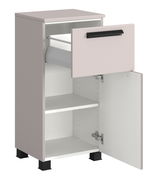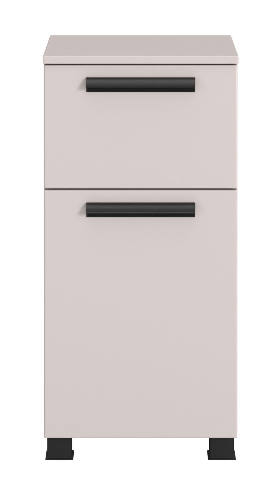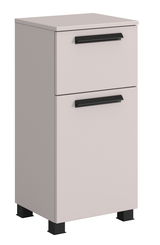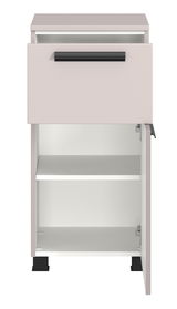 Der XORA Unterschrank VANNES verleiht Ihrem Raum mit seinem modernen und trendigen Design das gewisse Etwas. Die elegante Kombination aus schwarzem Fuß und kaschmirfarbener Front und Korpus schafft eine harmonische und stilvolle Optik. Das Hauptmaterial besteht aus hochwertiger Holznachbildung, das sowohl langlebig als auch pflegeleicht ist. Die Drehtür, die mit einem Softclose-Mechanismus ausgestattet ist, sorgt für ein sanftes und geräuschloses Schließen. Mit einem Griff lässt sich die Tür mühelos öffnen und schließen. Zusätzlich verfügt der Unterschrank über eine praktische Schublade, die zusätzlichen Stauraum bietet.