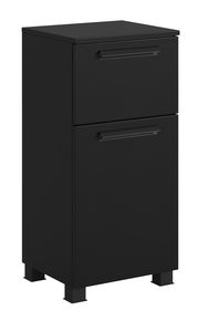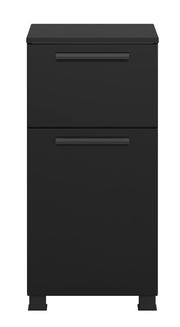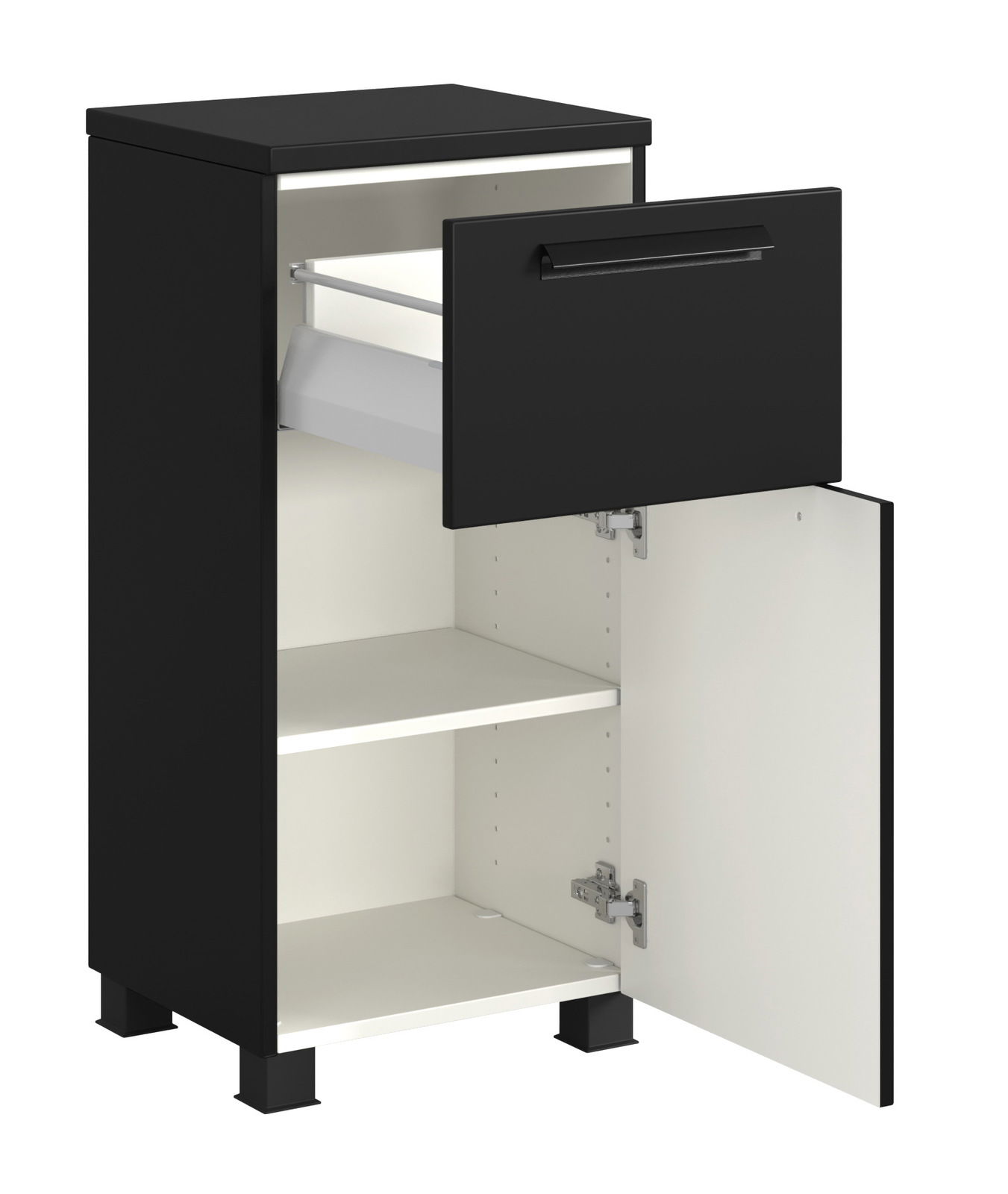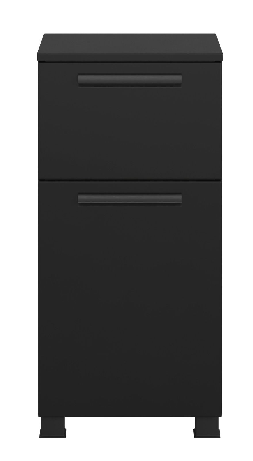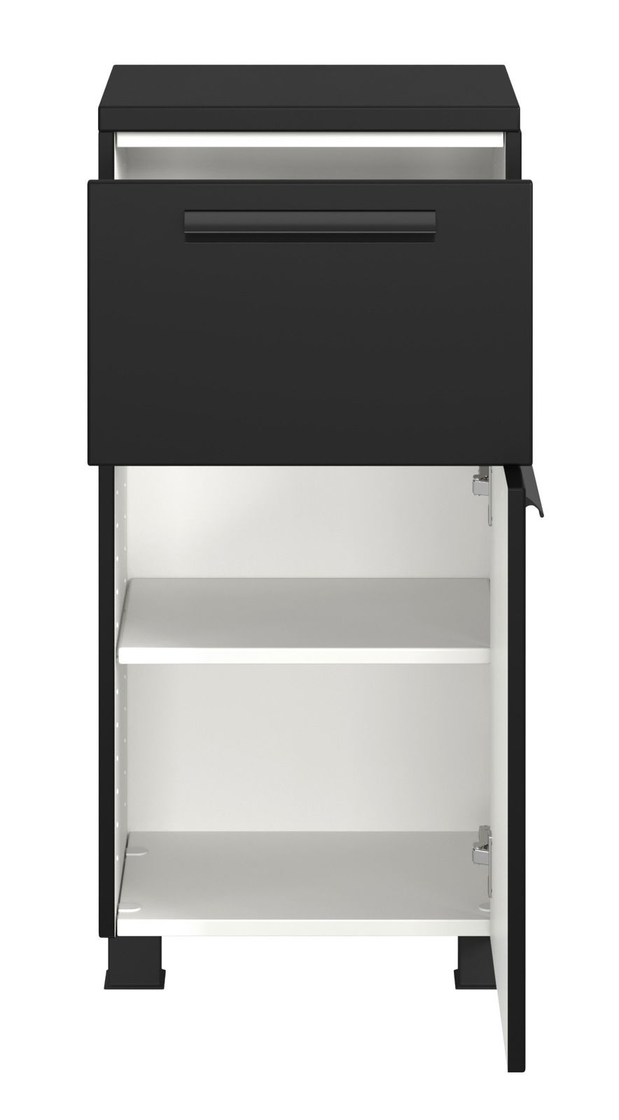 Der XORA Unterschrank VANNES besticht durch sein modernes und elegantes Design, das nahtlos in jeden Raum integriert werden kann. Mit seiner schwarzen Farbgebung, die sich über Fuß, Front und Korpus erstreckt, verleiht er Ihrem Zuhause einen zeitgemäßen Touch. Die Holznachbildung als Hauptmaterial unterstreicht den hochwertigen Look, während die Softclose-Funktion für eine sanfte und geräuschlose Schließung der Drehtür sorgt. Eine praktische Schublade bietet zusätzlichen Stauraum für Ihre Utensilien. Ob hängend oder stehend – der Unterschrank passt sich flexibel Ihren Bedürfnissen an und überzeugt mit seinem minimalistischen Stil.