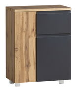Mit einer Breite von 65 cm bietet der XORA Unterschrank VARESE ausreichend Platz für verschiedenste Utensilien. Die durchdachte Aufteilung und die grifflosen Fronten sorgen für eine klare und moderne Optik, die in jeder Umgebung überzeugt. Die hochwertige Holznachbildung in Grau und Eiche Wotan verleiht dem Unterschrank eine edle Haptik und macht ihn zum Hingucker in jedem Raum. Erleben Sie die perfekte Kombination aus Funktionalität und Design und bringen Sie neuen Schwung in Ihr Zuhause. Bestellen Sie den XORA Unterschrank VARESE noch heute und geniessen Sie ein stilvolles Wohnambiente.