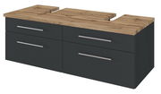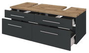 Der XORA Waschbeckenunterschrank DAVOS bringt modernes Design und Funktionalität in Ihr Badezimmer. Die Front des Schranks präsentiert sich in stilvollem Grau, während der Korpus in ansprechendem Graphit gehalten ist. Die Hauptfarbe Grau sorgt für eine zeitlose Eleganz. Gefertigt aus hochwertiger Holznachbildung, bietet der Schrank nicht nur eine ansprechende Optik, sondern auch Langlebigkeit. Mit vier geräumigen Schubladen und praktischen Griffen ausgestattet, bietet der Unterschrank ausreichend Stauraum für all Ihre Badezimmerutensilien. Dank der Softclose-Funktion schliessen die Schubladen sanft und leise.