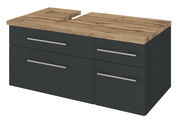 Erleben Sie stilvolle Eleganz mit dem XORA Waschbeckenunterschrank links DAVOS. Dieser hängende Waschtischunterschrank vereint modernes Design mit praktischer Funktionalität. Die dezente Farbgebung in Grau und Graphit fügt sich harmonisch in jedes Badezimmer ein und setzt gleichzeitig trendige Akzente. Aus hochwertiger Holznachbildung gefertigt, bietet dieser Unterschrank nicht nur eine ansprechende Optik, sondern auch Langlebigkeit und Pflegeleichtigkeit. Mit vier geräumigen Schubladen und Softclose-Funktion sorgt der Unterschrank für ein geräuschloses und sanftes Schliessen, was Ihren Komfort zusätzlich erhöht.
