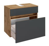 Mit dem Xora Waschbeckenunterschrank "LUCCA" ergänzen Sie sinnvoll die gleichnamige Möbelserie im Sanitärbereich oder Gäste-WC. Die grifflose mattweiße Front wird von einem geradlinigen Korpus in cognacfarbener Eichenoptik begleitet. Durch die attraktive Materialkombination erhält Ihr Wellnessraum eine heimelige Landhausnote.
