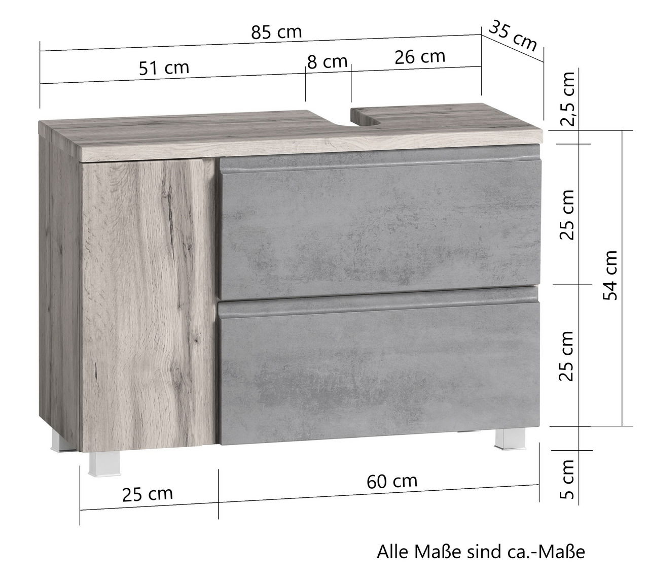 Waschbeckenunterschrank rechts – Platzsparend und vielseitig Der XORA Waschbeckenunterschrank rechts VARESE kann sowohl hängend als auch stehend montiert werden, was Ihnen maximale Flexibilität bei der Einrichtung Ihres Badezimmers bietet. Die hängende Aufstellung erleichtert die Reinigung des Bodens und schafft eine moderne, schwebende Optik. Die stehende Variante bietet zusätzliche Stabilität und ermöglicht eine schnelle Installation. Verleihen Sie Ihrem Badezimmer mit dem XORA Waschbeckenunterschrank rechts VARESE einen Hauch von Eleganz und Funktionalität. Bestellen Sie jetzt und geniessen Sie die perfekte Kombination aus Stil und Nutzen!