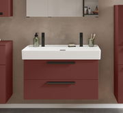 XORA Waschtisch-Set mit Softclose-Komfort Erleben Sie, wie Funktionalität auf stilvolles Design trifft mit dem XORA Waschtisch-Set für 2 Armaturen. Die praktischen Griffe ermöglichen ein einfaches Öffnen der beiden Schubladen, die viel Platz für Ihre persönlichen Gegenstände bieten. Das moderne Rot des Sets kann Ihren Raum in eine trendige Wohlfühloase verwandeln. Die Kombination aus durchdachtem Design und hochwertigen Materialien macht das Waschtisch-Set zu einer idealen Wahl für jedes moderne Badezimmer. Verleihen Sie Ihrem Bad einen frischen Look und investieren Sie in zeitlose Eleganz mit diesem Waschtisch-Set.