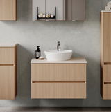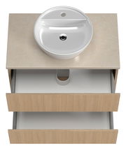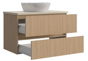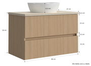 Das XORA Waschtisch-Set TOULON besticht durch sein modernes Design und fügt sich perfekt in jedes Badezimmer ein. Die elegante Eiche-Optik verleiht dem Raum eine warme und einladende Atmosphäre. Dank der grifflosen Fronten wirkt das Set minimalistisch und stilvoll, während die praktische Hängeaufstellung für eine luftige Raumwirkung sorgt. Mit zwei geräumigen Schubladen bietet das Waschtisch-Set ausreichend Stauraum für Ihre Badezimmerutensilien. Die Schubladen sind mit einer Softclose-Funktion ausgestattet, die ein sanftes und leises Schließen ermöglicht. Gefertigt aus hochwertiger Holznachbildung, verbindet das Set Ästhetik mit Funktionalität.