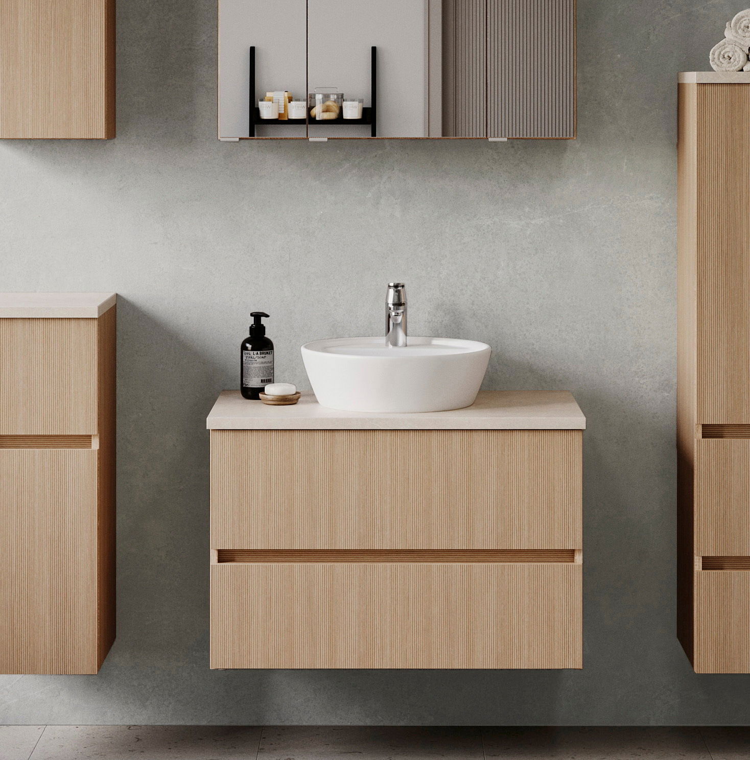Waschtisch-Set TOULON: Design trifft Funktionalität Das XORA Waschtisch-Set TOULON bringt modernen Stil in Ihr Badezimmer und überzeugt mit durchdachter Funktionalität. Die warme Eiche-Farbe des Korpus und der Fronten sorgt für ein harmonisches Ambiente, während die grifflose Gestaltung dem Set einen zeitgemäßen Look verleiht. Die Softclose-Funktion der Schubladen garantiert leises Schließen und erhöht den Komfort im Alltag. Die hochwertige Holznachbildung bietet Langlebigkeit und Pflegeleichtigkeit. Erleben Sie modernes Design und praktische Funktionalität in Ihrem Badezimmer. Gestalten Sie Ihr Bad neu und bestellen Sie noch heute das Waschtisch-Set TOULON.