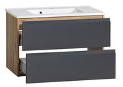 XORA Waschtisch-Set VARESE - Eleganz trifft Funktionalität Mit seiner Breite von 80 cm bietet das XORA Waschtisch-Set VARESE ausreichend Platz und Stauraum für Ihre Badutensilien. Die Kombination aus grauer Front und Eiche Wotan Korpus verleiht Ihrem Badezimmer eine moderne und warme Atmosphäre. Die grifflosen Schubladen unterstreichen das puristische Design und lassen das Set besonders edel wirken. Erleben Sie die perfekte Symbiose aus Design und Funktionalität und verleihen Sie Ihrem Badezimmer einen neuen Look. Bestellen Sie jetzt und verwandeln Sie Ihr Badezimmer in eine stilvolle Wohlfühloase!