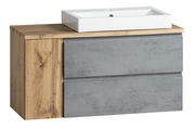 Das XORA Waschtisch-Set VARESE beeindruckt mit einem modernen und trendbewussten Design. Die Kombination aus betonfarbener Front und Korpus in Eiche Wotan sorgt für einen stilvollen Look, der sich perfekt in jedes Badezimmer einfügt. Das hängende Waschtisch-Set ist nicht nur optisch ansprechend, sondern auch praktisch. Mit einer Tür und zwei Schubladen bietet es genügend Stauraum für Ihre Badutensilien. Dank der grifflosen Optik und der hochwertigen Holznachbildung als Hauptmaterial strahlt das Set eine zeitlose Eleganz aus. Die Softclose-Funktion sorgt zudem für ein geräuschloses und sanftes Schliessen von Türen und Schubladen.