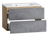 Das XORA Waschtisch-Set VARESE verbindet modernes Design mit trendigen Akzenten und funktionalen Details. Die Kombination aus frontaler Betonoptik und einem Korpus in Eiche Wotan schafft eine stilvolle und zugleich warme Atmosphäre in Ihrem Badezimmer. Dank der grifflosen Fronten und der klaren Linienführung wirkt das Set besonders elegant und zeitgemäss. Die zwei geräumigen Schubladen bieten viel Stauraum und sind mit einer Softclose-Funktion ausgestattet, die ein sanftes und leises Schliessen gewährleistet. Das hängende Design sorgt für eine leichte Reinigung und verleiht dem Raum ein luftiges Ambiente.