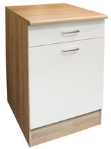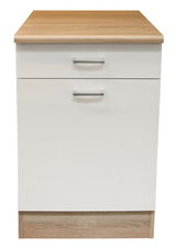 Yourkitchen Unterschrank ANDY – Praktischer Stauraum Der Unterschrank ANDY ist die ideale Lösung für zusätzlichen Stauraum in Ihrer Küche. Die Drehtür und die Schublade bieten ausreichend Platz, um Ihre Küchenutensilien geordnet zu verstauen. Das stilvolle Design und die hochwertigen Materialien machen ihn zu einem echten Highlight in Ihrer Küche. Die weiße Front in Kombination mit dem eichenfarbenen Korpus schafft ein harmonisches Gesamtbild, das sich perfekt in moderne Einrichtungsstile integriert. Entscheiden Sie sich für den Unterschrank ANDY und erleben Sie, wie er Ihre Küche aufwertet. Bestellen Sie jetzt und gestalten Sie Ihre Küche neu!