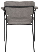 Zeitgemäßem Landhausdesign, aber auch minimalistischen Wohnkonzepten bietet der Z2 Armlehnenstuhl "JOLIEN" mit seinem hellgrauen Webstoffbezug von Sitzschale, Arm- und Rückenlehne einen angenehmen Ruhepol. Im dezenten Kontrast dazu agiert das schwarze Metallgestell.