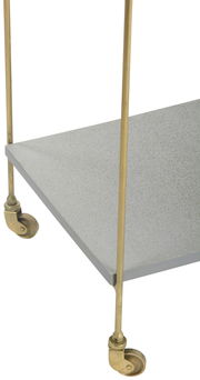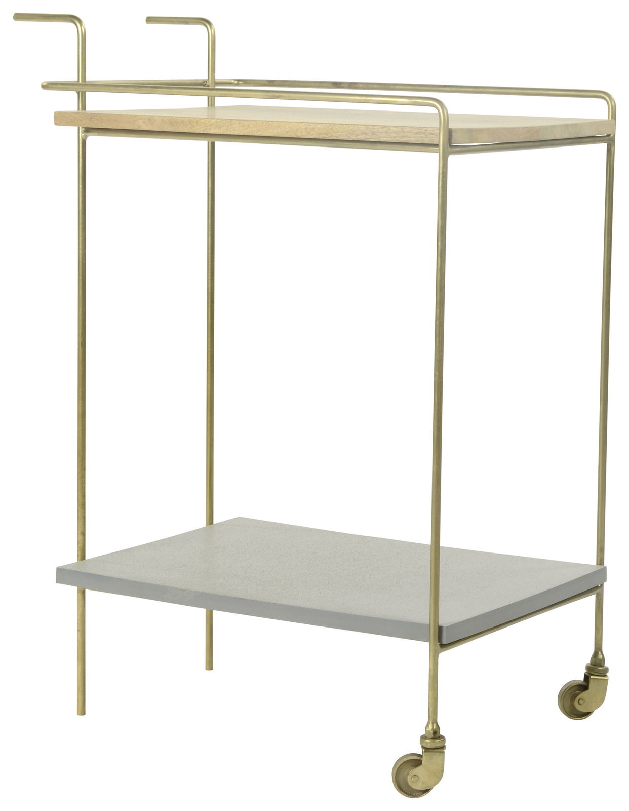 In Ihrem modernen Interieur stellt der Z2 Barwagen "MAZI" durch sein retro-orientiertes Erscheinungsbild einen eleganten und funktionalen Blickfänger dar. Sein mattgoldener Metallrahmen aus feinem Rundrohr ist mit zwei Rollen ausgestattet. So lässt er sich jederzeit leicht verschieben. Als Ablageflächen dienen eine schön gemaserte Mangoholzplatte oben sowie eine graue MDF-Platte in Terrazzo-Optik unten. Insgesamt kann der praktische Wagen bis 30 kg belastet werden. Die B/H/T ca. 60 x 40 x 80 cm Abmessungen passen in jede Nische. Kaufen Sie den Z2 Barwagen "MAZI" als stilsicheren Getränkebegleiter oder zur Speisenanrichtung!