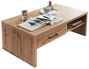 Sie werden von diesem praktischen Couchtisch begeistert sein. Als eingebaute Highlights runden eine Schublade und eine Ablagefläche das Möbelstück ab. Das Modell FUNNY PLUS macht in seinem modernen Stil eine hervorragende Figur und ist aus Holz-Nachbildung hergestellt. Der Beistelltisch in der Farbe Eiche ist mit einer Tischplatte, welche eine rechteckige Form hat, ausgestattet. Er besitzt ein Breitenmass von 110 Zentimetern, eine Gesamthöhe von 40 Zentimetern sowie eine Tiefe von 65 Zentimetern. Das Modell FUNNY PLUS bringt ein Gewicht von 30 Kilogramm auf die Waage. In gewohnter Qualität der Marke Z2 steht das Möbelstück für ein einzigartiges Wohnerlebnis und gelungene Gestaltung. Mit diesem Beistelltisch können Sie Ihre vier Wände verschönern.