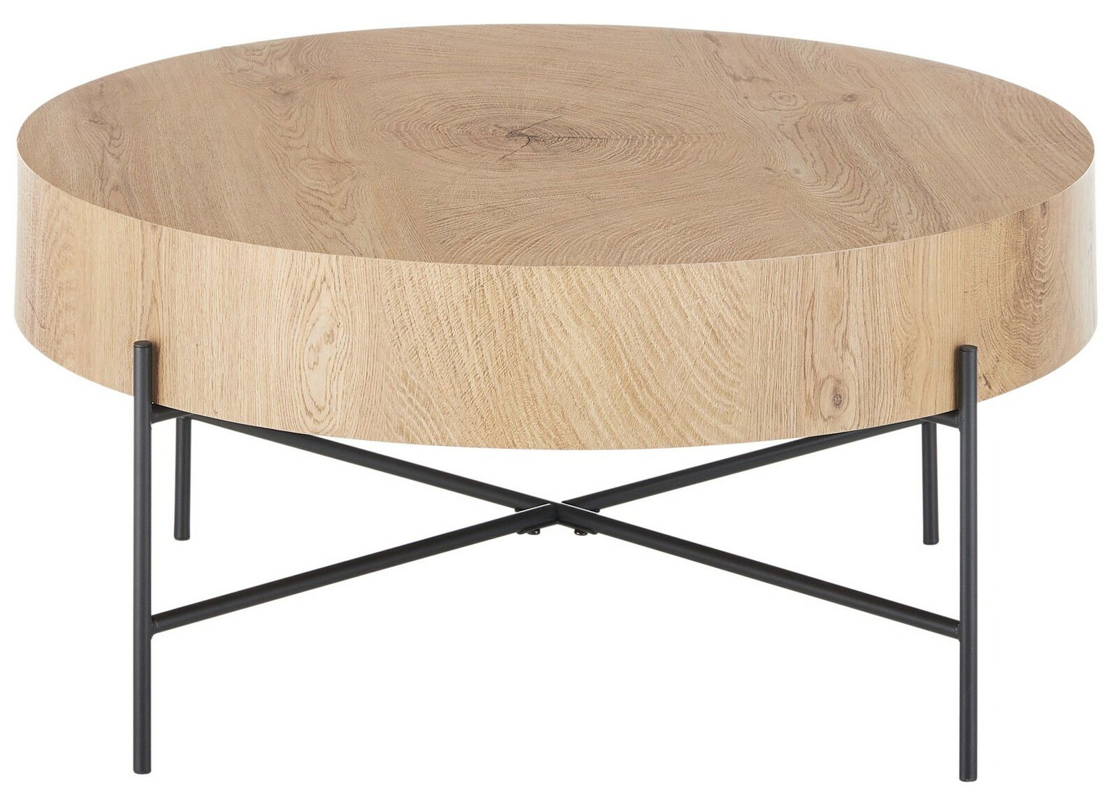 Entdecken Sie den Z2 Couchtisch MANACOR, der mit seinem modernen, trendigen Design und der eleganten Kombination aus Materialien Ihr Wohnzimmer aufwertet. Die runde Tischplatte in Eiche-Nachbildung verleiht jedem Raum eine warme und natürliche Ausstrahlung, während das schwarze, mattierte Metallgestell für einen stilvollen Kontrast sorgt. Dieser Couchtisch vereint Funktionalität mit Ästhetik und ist ein echter Blickfang in jedem modernen Zuhause. Geeignet für den alltäglichen Gebrauch, bietet er eine Belastbarkeit von bis zu 10 kg und ist damit ideal für alltägliche Gegenstände oder dekorative Akzente. Lassen Sie sich von diesem zeitlosen Möbelstück inspirieren.