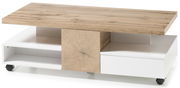 Z2 Couchtisch RENNES: Stil trifft Funktion Der Z2 Couchtisch RENNES bietet nicht nur ein modernes Design, sondern auch eine beeindruckende Belastbarkeit von bis zu 35 kg. Der Tisch wurde mit einem Auge für Detail entworfen, um sowohl ästhetisch ansprechend als auch praktisch zu sein. Die Kombination aus Eiche-Dekor und weißem Finish sorgt für ein harmonisches Gesamtbild, das sich nahtlos in Ihr Wohnkonzept einfügt. Die clevere Schublade bietet zusätzlichen Stauraum, um Ihr Zuhause aufgeräumt zu halten. Entdecken Sie die perfekte Mischung aus Stil und Funktionalität und geben Sie Ihrem Wohnzimmer ein neues Highlight.