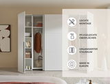 Der Z2 Dreh-/Schwebetürenschrank 4trg MATURS präsentiert sich in einem modernen und trendigen Design, das Ihrem Schlafzimmer ein stilvolles Upgrade verleiht. Die Kombination aus weißen Fronten und einem weißen Korpus sorgt für ein helles und frisches Ambiente. Mit vier Türen bietet dieser Schrank ausreichend Stauraum für Kleidung und Accessoires. Die hochwertige Holznachbildung verleiht dem Schrank eine natürliche Ausstrahlung, während die Griffleiste das minimalistische Design perfekt abrundet. Dieser Schrank ist die ideale Wahl für alle, die Wert auf modernes Design und Funktionalität legen. Erleben Sie, wie dieser Schrank Ihrem Raum neuen Glanz verleiht.