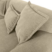 Entdecken Sie das Z2 Ecksofa PONTO, das mit seinem modernen und trendigen Design einen stilvollen Akzent in Ihrem Wohnraum setzt. Der Webstoffbezug in elegantem Beige harmoniert perfekt mit den schwarzen Kunststofffüßen und verleiht dem Sofa eine zeitgemäße Ästhetik. Mit einer Sitzhöhe von 50 cm bietet das Sofa einen bequemen Sitzkomfort, während der Polyetherschaumkern für eine optimale Polsterung sorgt. Das Flachgewebe des Bezugs garantiert eine angenehme Haptik und Langlebigkeit. Ein inkludiertes Zierkissen rundet das Erscheinungsbild des Sofas ab und lädt zum Entspannen ein.