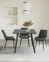Der Z2 Esstisch HILMAR beeindruckt durch sein modernes Design und seine quadratische Form. Mit einer Breite und Tiefe von jeweils 80 cm sowie einer Höhe von 75 cm bietet dieser Esstisch ausreichend Platz für gemütliche Mahlzeiten und gesellige Runden. Die Hauptfarbe Grau verleiht ihm eine elegante und zugleich zeitlose Ausstrahlung, die sich perfekt in verschiedene Einrichtungsstile integrieren lässt. Gefertigt aus hochwertiger Holznachbildung, überzeugt der Tisch durch seine robuste Bauweise und eine Belastbarkeit von bis zu 60 kg. Dieser Esstisch ist eine stilvolle und funktionale Bereicherung für jedes Esszimmer.