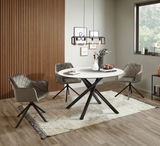Der Z2 Esstisch MARIUS verbindet modernes Design mit eleganter Funktionalität und wird zum stilvollen Mittelpunkt in Ihrem Essbereich. Mit seiner runden Form und der klaren, weißen Farbgebung fügt sich der Tisch harmonisch in jede zeitgemäße Einrichtung ein. Die Oberplatte aus hochwertiger Keramik mit einer Stärke von 4,3 mm kombiniert sich perfekt mit der Klarglasplatte von 8 mm, die von einem schwarz lackierten Rahmen eingefasst wird. Diese Materialkombination sorgt für eine beeindruckende Optik und hohe Beständigkeit. Der Tisch ist nicht nur ein Designobjekt, sondern auch ein funktionales Möbelstück für Ihr Zuhause.