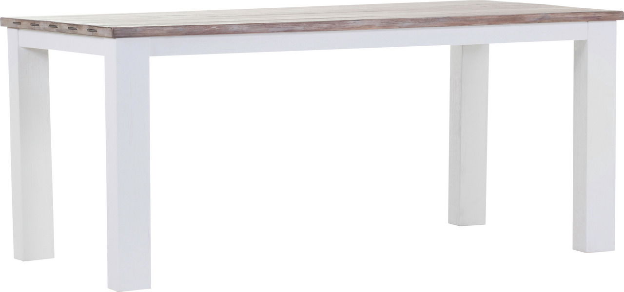 Kreieren Sie mit diesem gleichermassen funktionalen wie schönen Tisch eine behagliche Atmosphäre für Ihre Mahlzeiten. Sämtliche Qualitäten und Besonderheiten der Marke Z2 werden im Möbel zusammengeführt. Der Tisch aus Akazie ist in Braun und Weiss gehalten. Das Modell TAMPA kann auch optisch durch sein ländliches Design überzeugen. Der 41 Kilogramm schwere Tisch weist eine Tischplatte, deren Stärke 30 Millimeter misst, auf. Er besitzt eine Breite von 180 Zentimetern, eine Gesamthöhe von 78 Zentimetern sowie eine Tiefe von 90 Zentimetern. Holen Sie an diesem hübschen Möbelstück Ihre Liebsten zusammen und kreieren Sie schöne Erinnerungen an gemeinsam verbrachte Stunden und leckere Mahlzeiten.