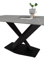 Entdecken Sie den Z2 Esstisch VENTURA, der durch sein modernes und trendiges Design besticht. Die graue, marmorierte Keramik-Tischplatte mit einer Stärke von 12 mm bringt Eleganz und Stil in jeden Raum. Abgerundete Kanten verleihen dem Tisch eine harmonische Ästhetik und machen ihn zu einem Blickfang in Ihrem Esszimmer. Der Esstisch ist nicht nur optisch ansprechend, sondern auch äusserst robust und langlebig, dank der hochwertigen Keramik als Hauptmaterial. Seine schlichte, graue Farbe fügt sich nahtlos in moderne Einrichtungskonzepte ein und bietet vielseitige Kombinationsmöglichkeiten.