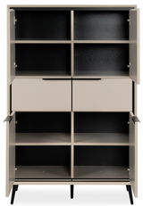 Z2 Highboard ARONA – Stilvolles Stauraumwunder Der Korpus aus Sandfarbe und die schwarzen Akzente verleihen dem Z2 Highboard ARONA nicht nur eine harmonische Optik, sondern auch große Anpassungsfähigkeit an verschiedene Wohnstile. Das elegante Design mit der klaren Linienführung und den funktionalen Drehtüren bietet eine ideale Lösung, um Alltagsgegenstände stilvoll zu verstauen. Die Kombination aus offenen und geschlossenen Elementen ermöglicht eine flexible Nutzung. Entdecken Sie jetzt die perfekte Balance zwischen Design und Funktionalität und verleihen Sie Ihrem Wohnbereich eine moderne Note. Bestellen Sie noch heute und erleben Sie die Transformation!