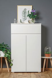 Die Kommode IMAGE lässt sich in Ihr Zuhause wunderbar integrieren. Der Schubladenschrank erweitert mit seinen zwei Drehtüren Ihren Platz zum Unterbringen Ihres Hab und Guts und verfügt über eine Schublade, mit der das Aufrechterhalten der Ordnung in Ihren vier Wänden kinderleicht wird. Er ist mit drei Böden versehen. Bei dieser Kommode können Sie auf die ausgezeichnete Qualität der Marke Z2 vertrauen. Das Modell IMAGE besteht aus Holz-Nachbildung und ist in Weiss gehalten. Es hat eine Breite von insgesamt 80 cm, eine Höhe von 131 cm und eine Tiefe von 40 cm. Ausserdem weiss das 56 kg schwere Möbel mit Fronten aus einem weissen Material zu begeistern. Diese Kommode sorgt für bewundernde Blicke.