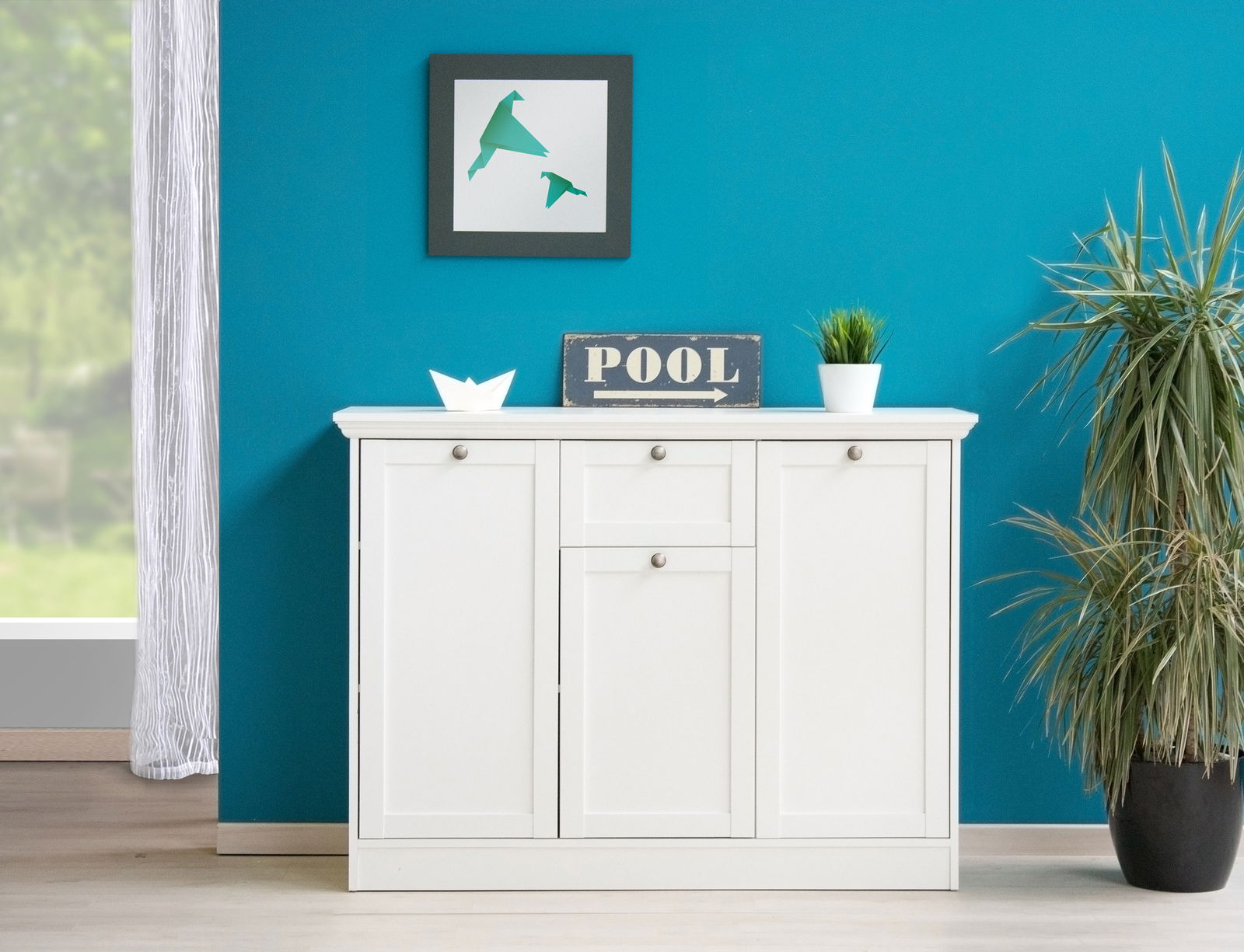 Ganz in Weiß gehalten und mit Knöpfen im Vintage-Look passt die trendige Z2 Kommode "LANDWOOD" zum modernen, aber auch zum klassischen Einrichtungsstil. Geeignet ist sie für Wohn-, Ess- oder auch das Schlafzimmer.