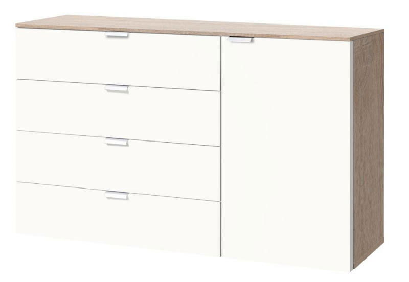 Die Z2 Kommode "CARINA" ergänzt das moderne Landhausambiente im gesamten Wohnbereich. Der Dekor des mit Sonoma-Eiche sägerau bezogenen Korpus wird durch die polarweiße Front attraktiv hervorgehoben. Griffe in mattierter Alu-Optik setzen ein feines Highlight.