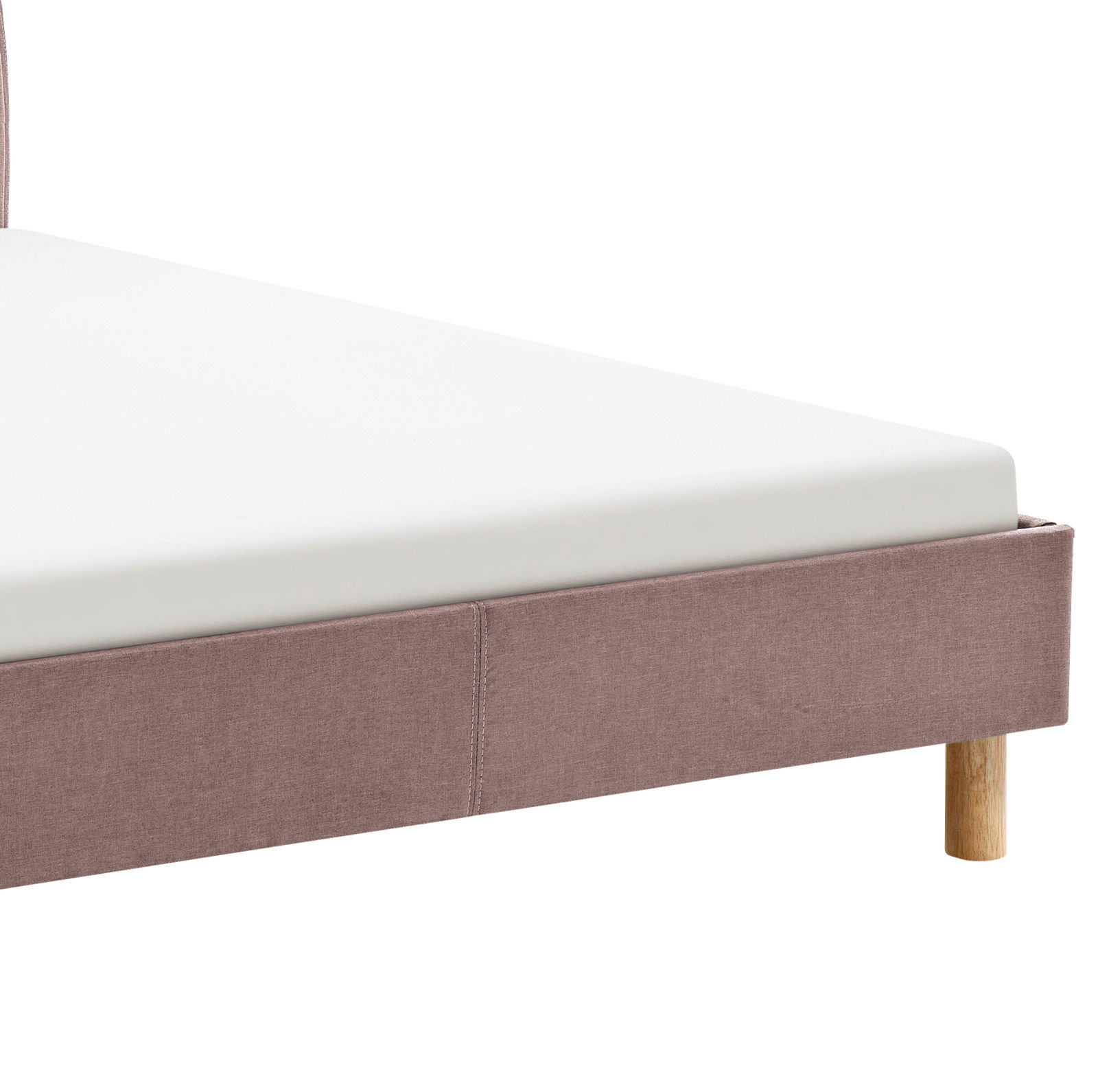 Mit dem Z2 Polsterbett (120) "LENA" bekommt modernes Cottageambiente im Schlafzimmer eine elegant romantische Note. Der glatte Stoff in Rosa und Standfüße aus braunem Eschenholz passen besonders schön zum hellen Raumklima.