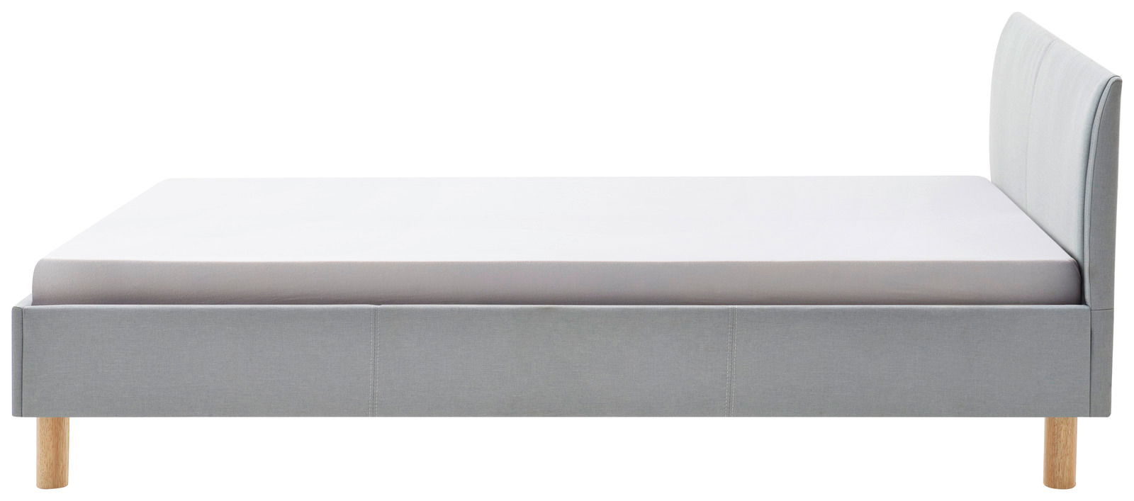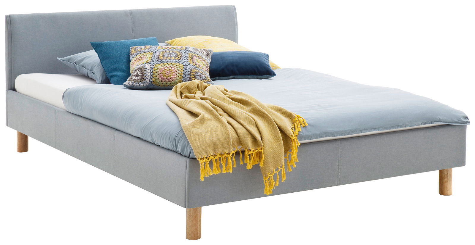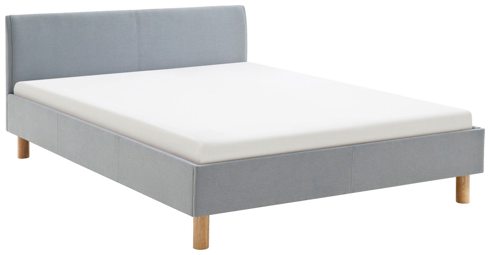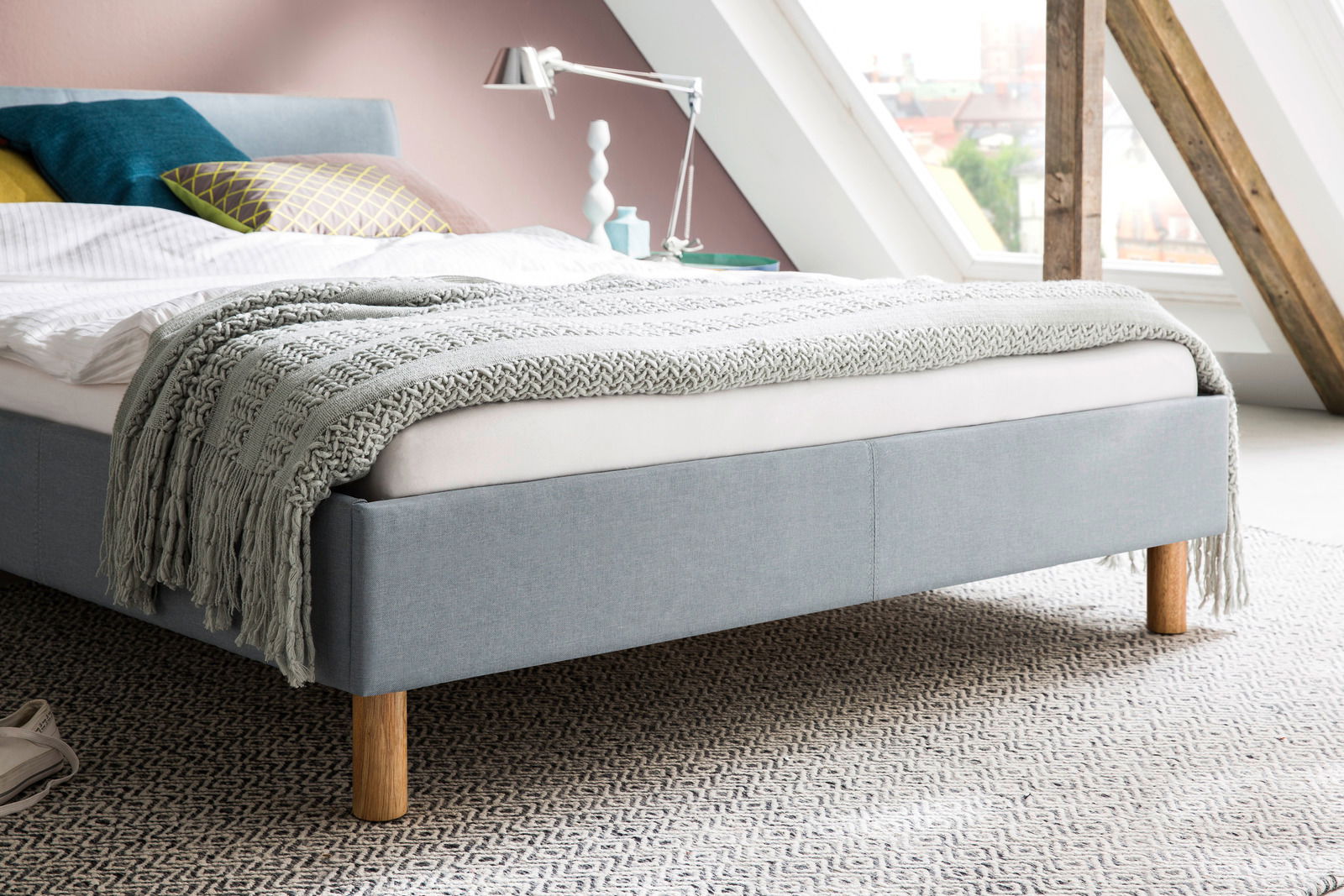 Mit seinem Stoffbezug in Eisblau harmoniert das geradlinig designte Z2 Polsterbett (140) "LENA" besonders elegant mit modernen Skandi-Schlafzimmern. Eichefarbene Standfüße aus Eschenholz setzen behagliche Akzente.