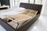 Im modernen Landhausambiente gibt das mit braunem Kunstleder bezogene Z2 Polsterbett (180) "BERN" ein gemütliches Erscheinungsbild ab. Das glatte Kopfteil und Metallfüße in Chromoptik sorgen für elegante Details.