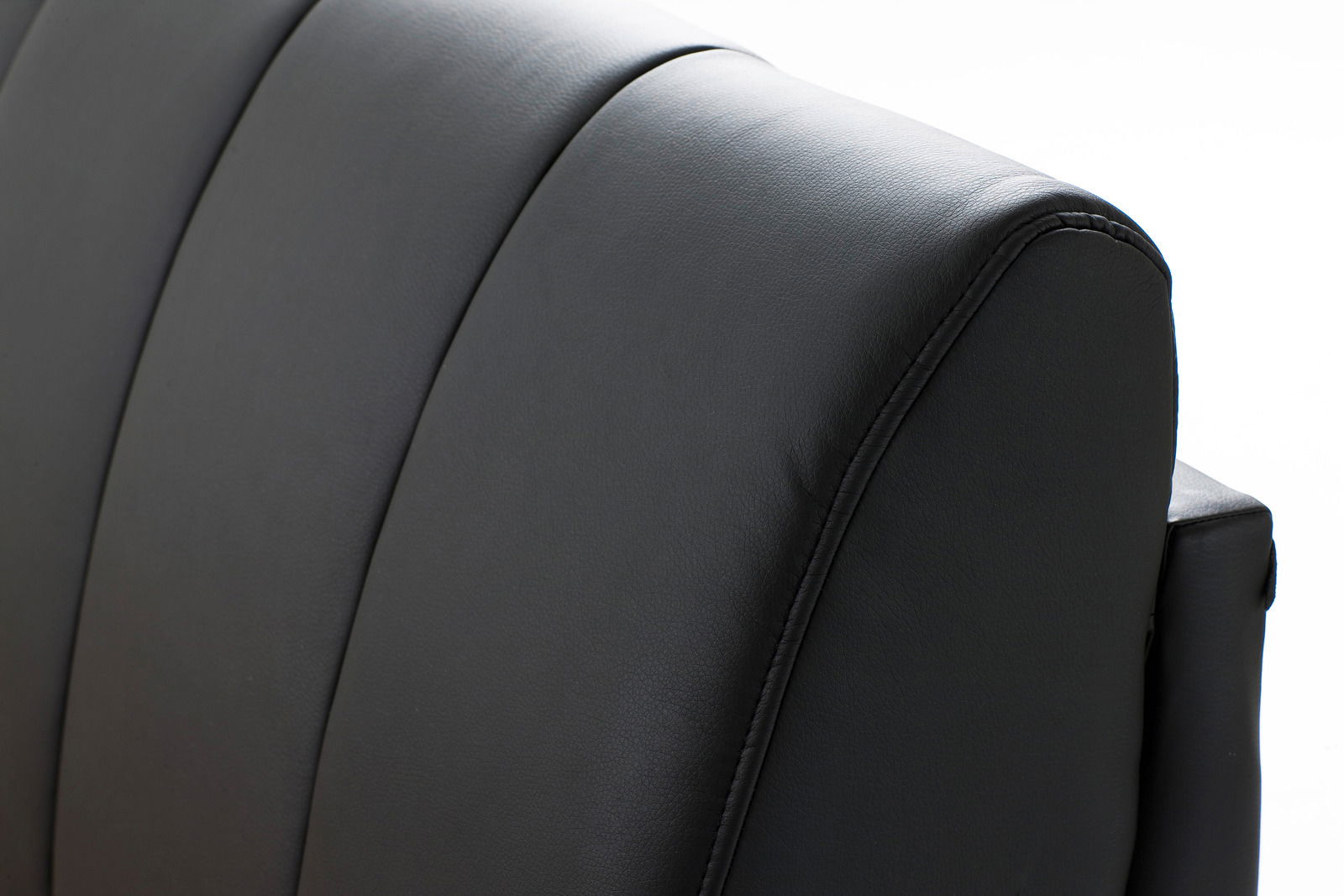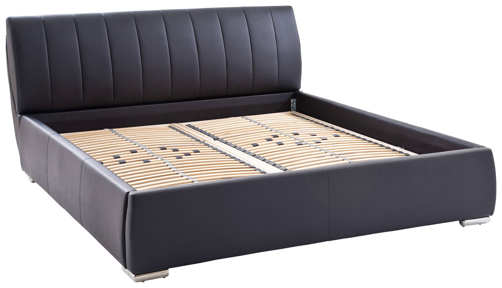 Das Z2 Polsterbett (200) "BERN" erzielt mit seinem schwarzen Kunstlederbezug einen stylishen Kontrast zu hellem Hochglanz- und modernem Landhausmobiliar. Metallfüße in Chromoptik und das glatte Kopfteil bewahren das ruhig-elegante Erscheinungsbild.