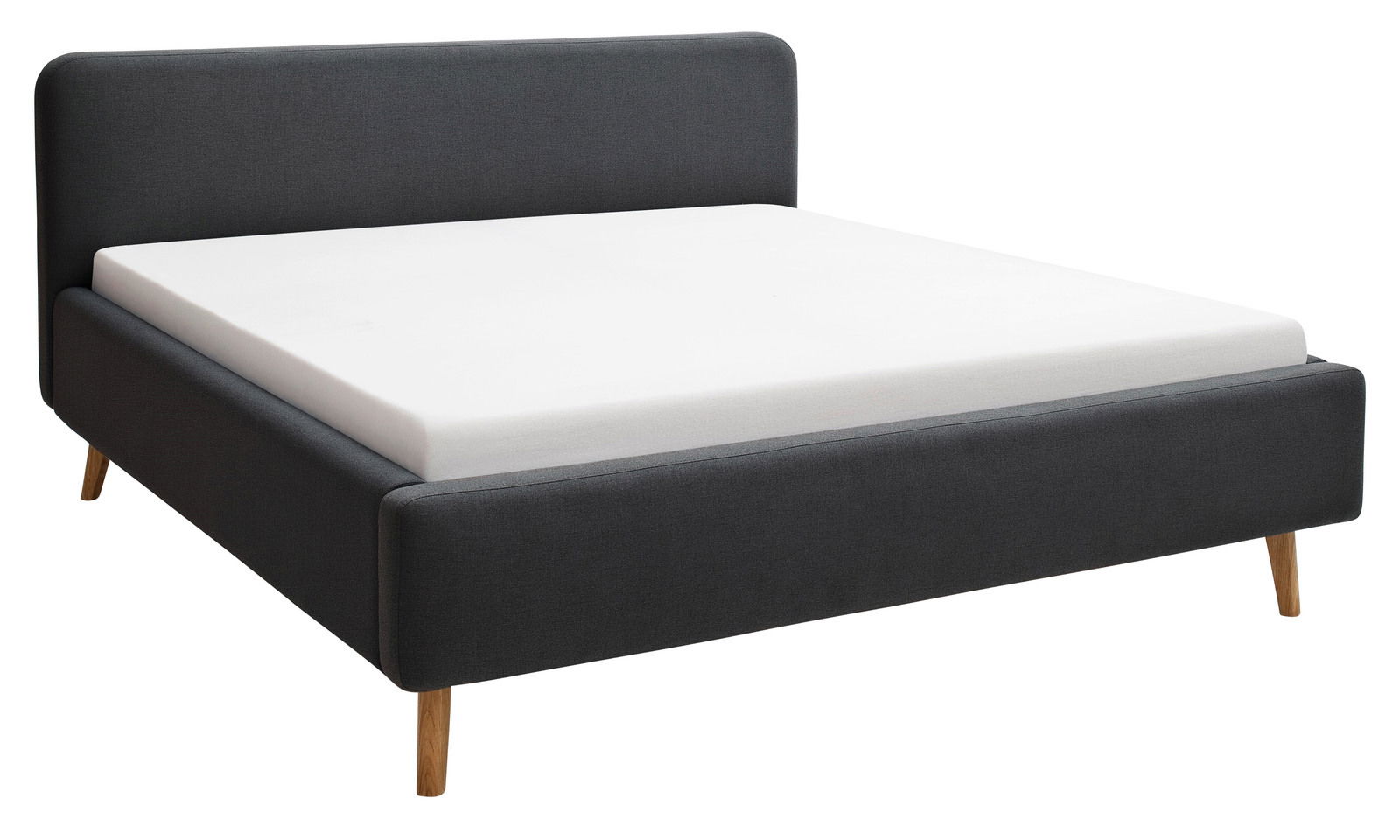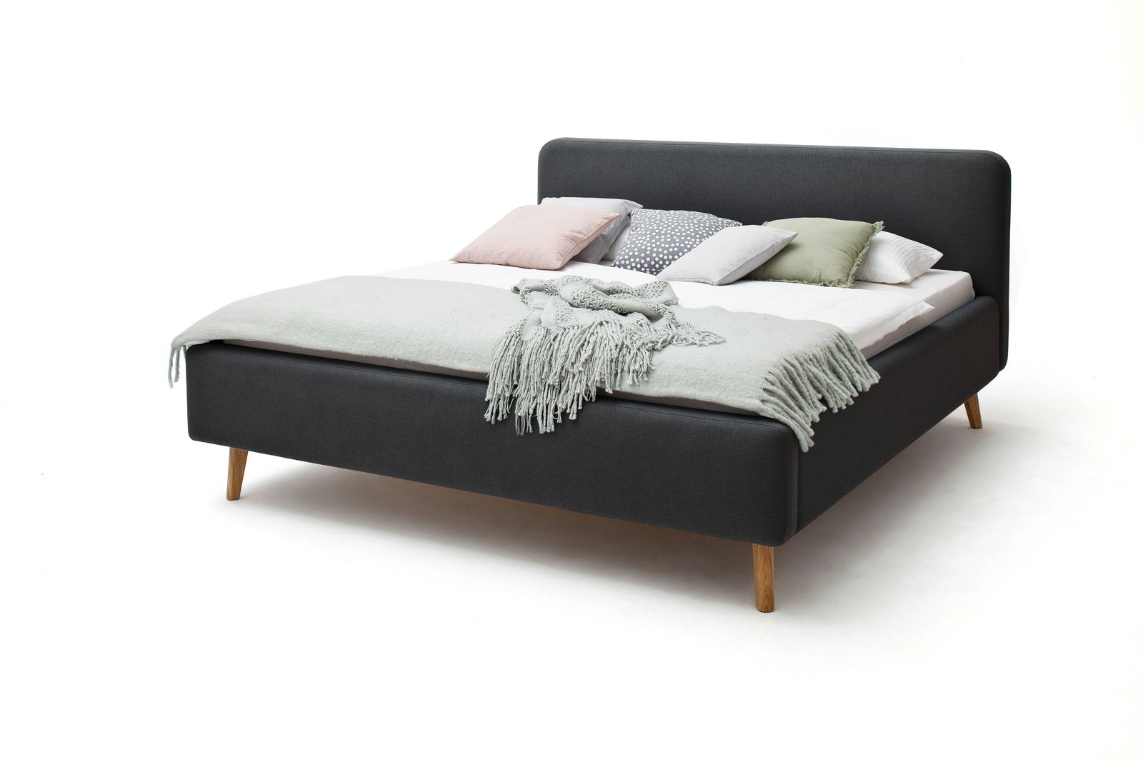 Zum modernen Skandi- sowie Landhausschlafzimmer bietet das anthrazitfarbene Z2 Polsterbett "MATTIS" einen eleganten Kontrast. Heimelige Akzente setzen die glatte Polsterstoffgestaltung des gesamten Rahmens sowie konische eichenfarbene Massivholzfüße.