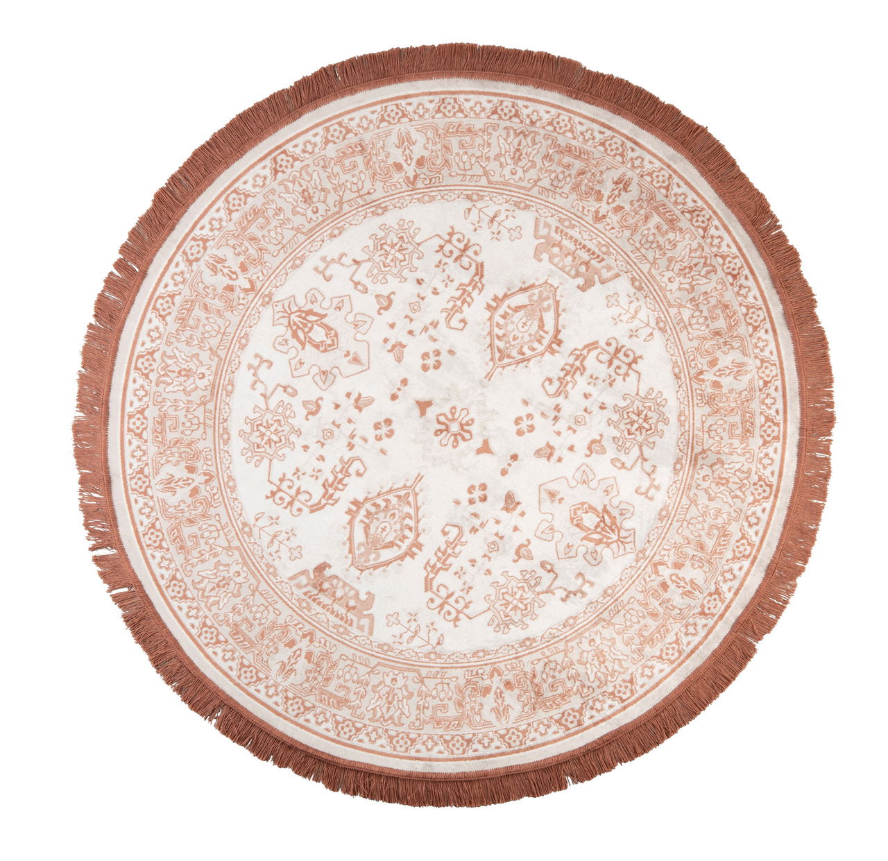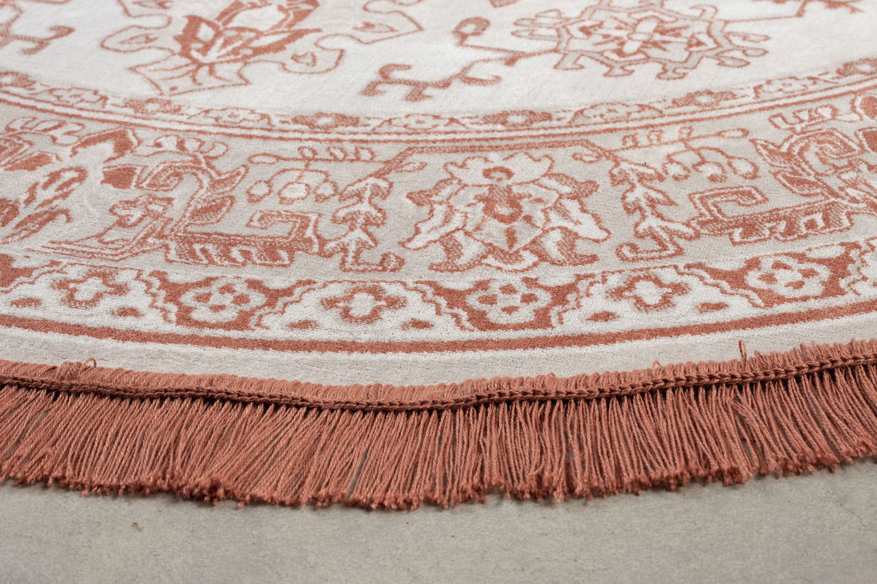 Als stimmungsvoller Raumbegleiter Ihrer cottageorientierten Einrichtung dient der Z2 Teppich "REZA". Durch das orientalische Muster in Altrosé und Beige strahlt der maschinell gefertigte Webteppich (aus 85 % Viskose, 15 % Polyester) Gemütlichkeit mit einer Prise Romatikflair aus. Die üppige Fransenkante (rundum, Florhöhe von 2,6 cm) sorgt für einen kontraststarken Hingucker. Bei einem Durchmesser von D ca. 160 cm passt die Ausführung (Gewicht 1,6 kg) in kleine Raumbereiche und ist dank rutschhemmender Styrol-Butadien-Kautschuk-Ausstattung auf der Teppichrückseite kompatibel mit allen Böden, einschließlich Fußbodenheizung. Bestellen Sie den Z2 Teppich "REZA" für Ihr Wohn-, Ess- oder Schlafzimmer!