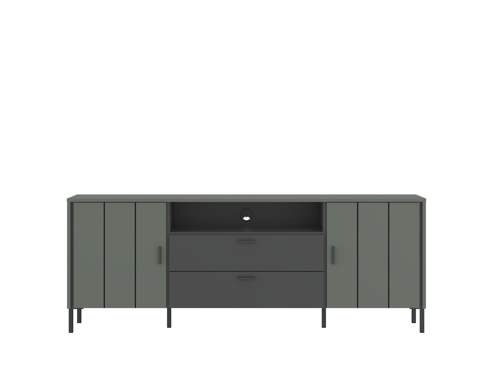 Das TV-Unterteil SHIRLEY besticht nicht nur durch sein ansprechendes Design, sondern auch durch seine praktischen Features. Es verfügt über zwei Drehtüren und zwei Schubladen mit Softclose-Funktion, die für eine geräuschlose Handhabung sorgen. Die Griffe ermöglichen ein einfaches Öffnen und Schliessen der Türen. Der anthrazitfarbene Metallfuss verleiht dem Möbelstück Stabilität und rundet das moderne Erscheinungsbild perfekt ab. Entdecken Sie die perfekte Kombination aus Design und Funktionalität für Ihr Wohnzimmer. Bestellen Sie das Z2 TV-Unterteil SHIRLEY noch heute und verleihen Sie Ihrem Zuhause einen Hauch von Eleganz!