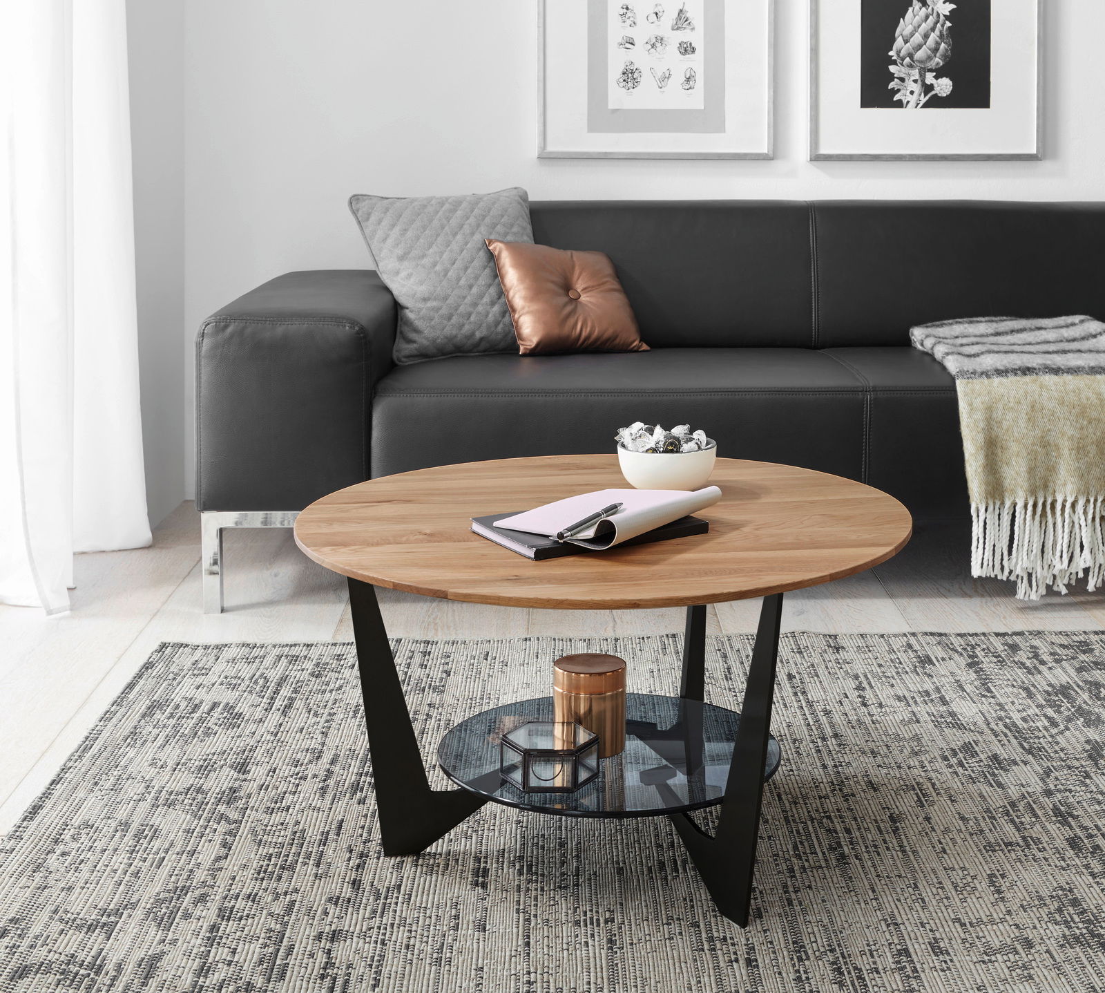 Mit seinem gefälligen D/H ca. 70 x 40 cm Durchmesser lässt sich der hochwertige pflegeleichte Beisteller (Gewicht 12 kg) zur Rundecke auch im kleinen Wohnzimmer integrieren (ohne Rollen). Massivholzoberplatte sowie die Glasablage bieten Platz für Pflanzenschalen, Zweitschriften und Snackschüsselchen (Maximal-Belastbarkeit: 30 kg). Gönnen Sie sich noch heute den ZURBRÜGGEN Couchtisch "CADIZ"!