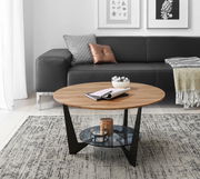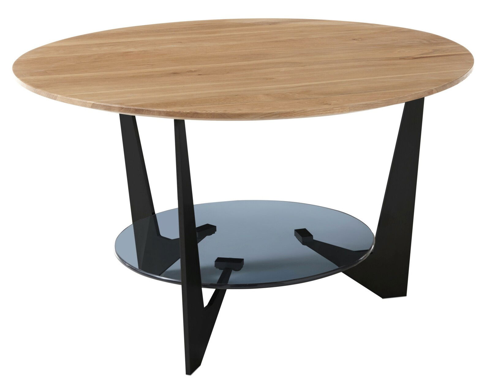 Jedem Farbklima in Ihrem angesagten Einrichtungstrend fügt sich der ZURBRÜGGEN Couchtisch "CADIZ" mühelos. Sein pulverbeschichtetes dreibeiniges Metallgestell in Mattschwarz umfasst eine graue Glasablage und trägt die naturfarbene geölte Eichenholzplatte. Dadurch ergibt sich ein elegantes Designkonzept.