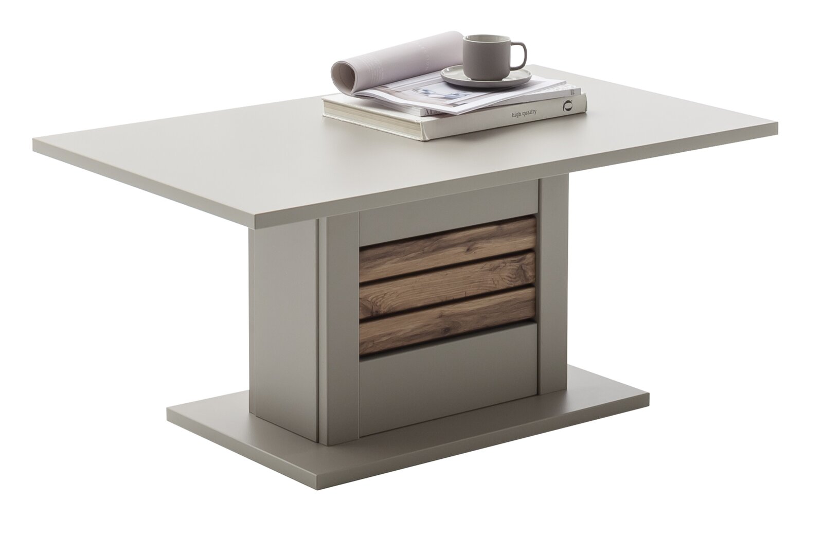 Dieser praktische Couchtisch ist die perfekte Ergänzung für Ihr Zuhause. Der graue Beistelltisch bereichert Ihr persönliches Einrichtungskonzept durch das moderne Design zusätzlich. Die tolle, rechteckige Tischplatte eignet sich als universell einsetzbares Möbelstück für Ihr Zimmer. Bei dem Material des Gestelles handelt es sich um Holz Nachbildung. Das Modell LÜTTICH weist eine Gesamtbreite von 100 Zentimetern, eine Höhe von 46 Zentimetern und ein Tiefenmass von 60 Zentimetern auf. In Zurbrüggen-Markenqualität steht es für geschmackvolles Design und ein grossartiges Wohngefühl. Das Kleinmöbel ist montiert insgesamt 22 Kilogramm schwer. Der schöne Beistelltisch LÜTTICH ist ideal für Ihre vier Wände geeignet.