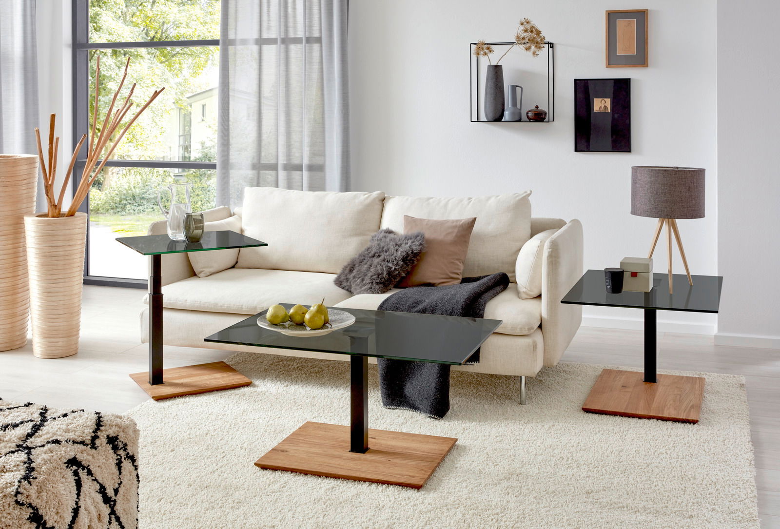 Dieser Couchtisch überzeugt auf ganzer Linie. Der höhenverstellbare Beistelltisch (von 47 bis 65 Zentimeter) kann auch optisch durch sein natürliches Design punkten. Er ist grau. Die schwarzen Füsse aus Metall tragen zum ansprechenden Gesamtbild des Modells 2591 bei. Der Beistelltisch besitzt eine Tischplatte aus Glas. Er ist montiert insgesamt 25,8 Kilogramm schwer. Das Modell 2591 hat ein Breitenmass von 90 Zentimetern, eine Höhe von 47 Zentimetern und eine Tiefe von 60 Zentimetern. Alle Qualitäten und Besonderheiten der Marke Zurbrüggen werden in diesem Tischchen zusammengeführt. Ihr neues Möbelstück macht in jedem Zuhause eine tolle Figur.