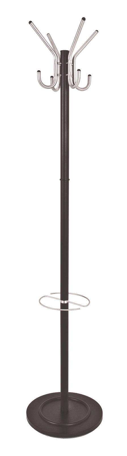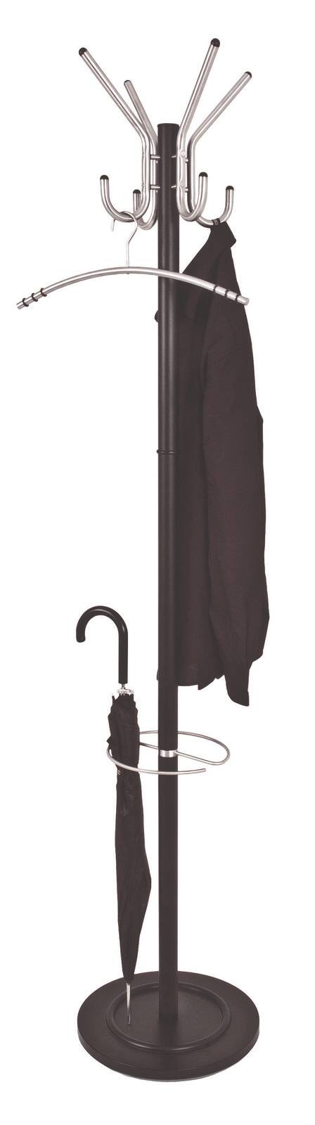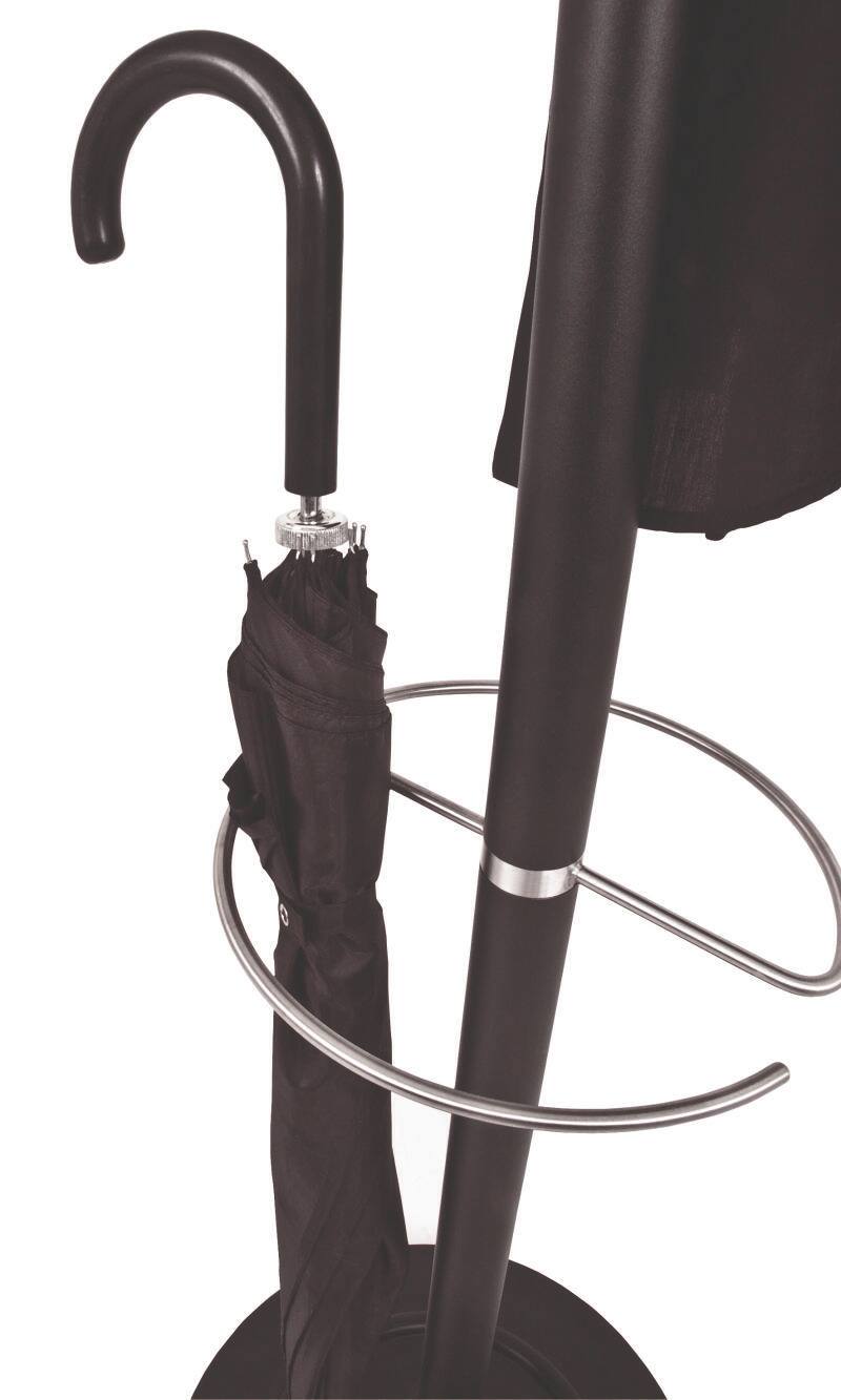 Der praktische Garderobenständer ist aus stabilem Stahl gefertigt. Dabei ist die Mittelstange in schwarzer Farbe lackiert, während die Haken und die Schirmhalterung alufarben sind. Mit der Höhe von ca. 182 cm finden selbst bodenlange Mäntel einen Platz auf dem eleganten Ständer von Zurbrüggen. Erfreuen auch Sie sich an dieser idealen Mischung aus ästhetischer Optik und praktischen Nutzen.