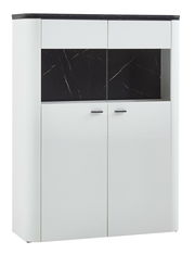 Das Zurbrüggen Highboard WAVE vereint modernes Design mit praktischer Funktionalität. Seine klare Linienführung und die elegante Farbkombination in Weiß machen es zu einem stilvollen Highlight in jedem Raum. Ausgestattet mit zwei Drehtüren, die aus einer hochwertigen Holznachbildung gefertigt sind, bietet das Highboard ausreichend Stauraum für Ihre persönlichen Gegenstände. Die integrierte Oberboden- und LED-Streifenbeleuchtung sorgt nicht nur für eine angenehme Atmosphäre, sondern setzt auch Ihre Dekorationen gekonnt in Szene. Die Kombination aus Holz- und Glastüren verleiht diesem Möbelstück einen besonderen Charme und lässt es in einem modernen Licht erstrahlen.
