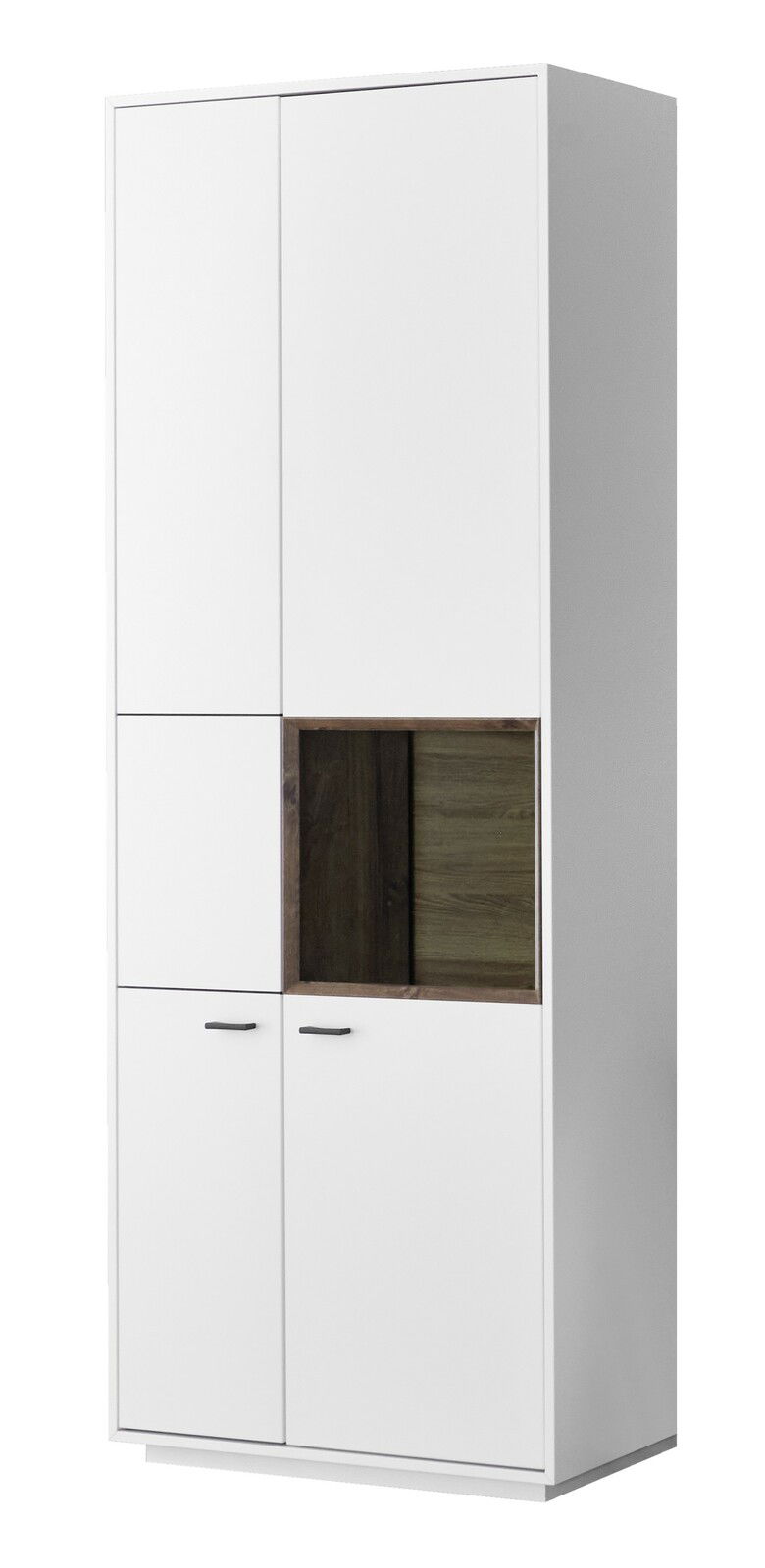 Die Zurbrüggen Kombi-Vitrine CORUNA vereint modernes Design mit funktionaler Eleganz und wird so zum Highlight in jedem Wohnraum. Mit ihrer Hauptfarbe in strahlendem Weiß und klaren Glaselementen fügt sie sich nahtlos in jedes zeitgemäße Interieur ein. Die Vitrine besticht durch zwei praktische Drehtüren: Eine Holztür auf der linken Seite und eine Kombination aus Holz und Glas auf der rechten Seite. Diese bietet nicht nur stilvollen Stauraum, sondern auch die Möglichkeit, Ihre Lieblingsstücke effektvoll in Szene zu setzen. Die integrierte Beleuchtung hebt die ausgestellten Objekte zusätzlich hervor und schafft eine warme Atmosphäre.