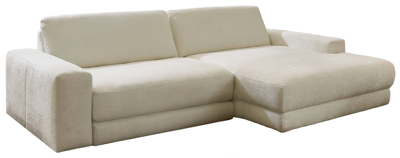 Erleben Sie den ultimativen Komfort mit der Longchairkombination HAMBURG, die durch ihr modernes Design und ihren trendigen Stil besticht. Der Bezug aus Stoff Rubens in natur verleiht dem Möbelstück eine elegante und zeitlose Ausstrahlung, die sich nahtlos in jedes Wohnambiente einfügt. Die Kombination aus einem 2er Sofa mit Armteil links und einem Canapè gerade XL mit Armteil rechts sorgt für Flexibilität und Komfort. Der schwarze Kunststofffuß ergänzt die natürliche Hauptfarbe und verleiht dem Design einen modernen Touch. Mit einer Sitzhöhe von 43 cm und einer Sitztiefe von 85 cm bietet die Nosagunterfederung in Verbindung mit der Kaltschaumpolsterung optimalen Sitzkomfort.