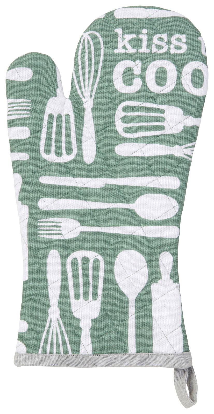 Sorgen Sie für eine einheitlich ausgestattete Küche mit dem Ofenhandschuh "KISS THE COOK" aus der gleichnamigen Kollektion. Der grüne Fäustling aus pflegeleichter reiner Baumwolle ist mit einer hitzebeständigen Wattierung ausgestattet. So sind Ihre Hände bei der Entnahme von heißen Kuchenformen und Brattöpfen aus dem Backofen oder an der Grillstation perfekt geschützt. Das weiße Muster typischer Küchenutensilien sorgt für gute Laune. Bei einem Gesamtmaß von B/L ca. 17 x 32 cm passt er über jede erwachsene Hand. Gönnen Sie sich den Ofenhandschuh "KISS THE COOK" am besten paarweise in verschiedenen Farben!