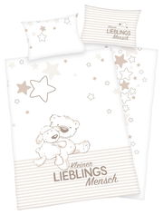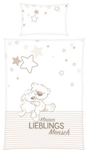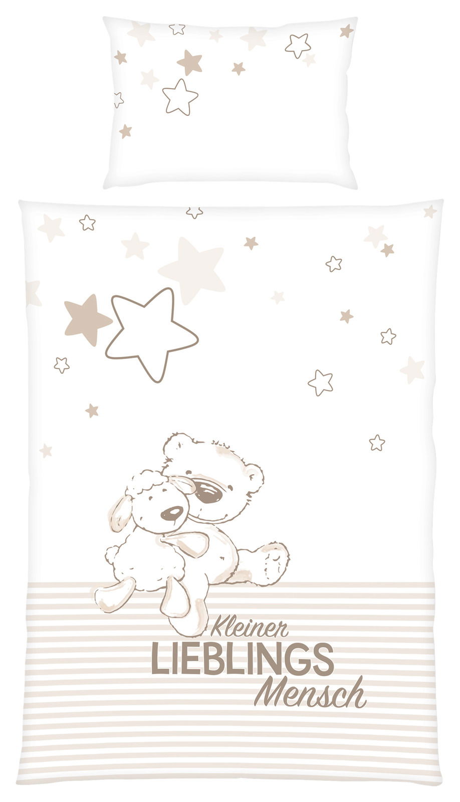Verleihen Sie dem Schlafzimmer einen Hauch von Eleganz und Komfort mit der Renforcé-Bettwäsche LIEBLINGSMENSCH. In einem sanften Beige gehalten, fügt sich dieses Set nahtlos in jede Schlafzimmereinrichtung ein. Die Bettwäsche besteht aus hochwertiger Baumwolle, die für ihre Atmungsaktivität und Langlebigkeit bekannt ist. Der Deckenbezug misst 100 x 135 cm, während der Kissenbezug eine Größe von 40 x 60 cm hat. Diese sorgfältig ausgewählten Maße bieten idealen Komfort für eine erholsame Nachtruhe. Die Bettewäsche ist nicht nur stilvoll, sondern auch funktional, da sie einfach zu pflegen und waschmaschinenfest ist.