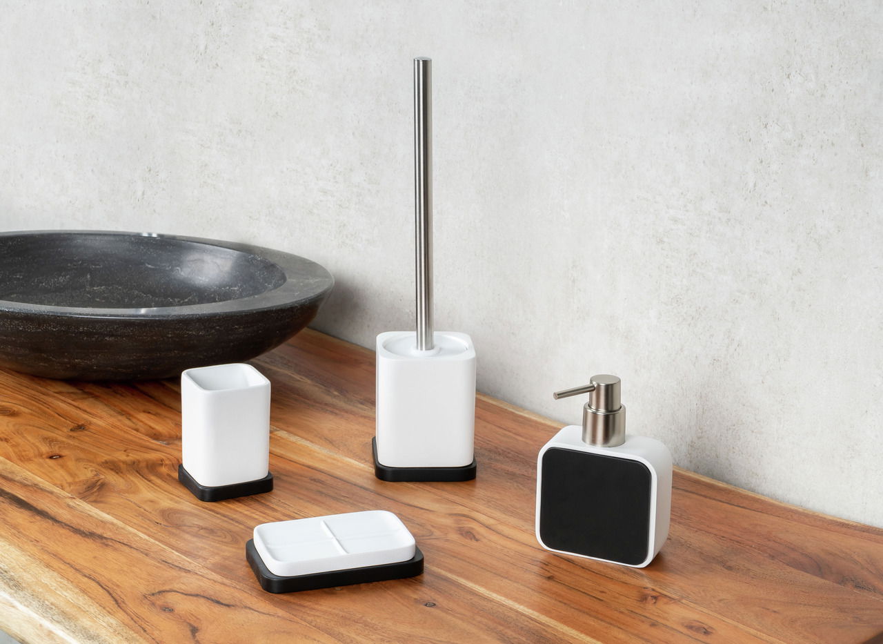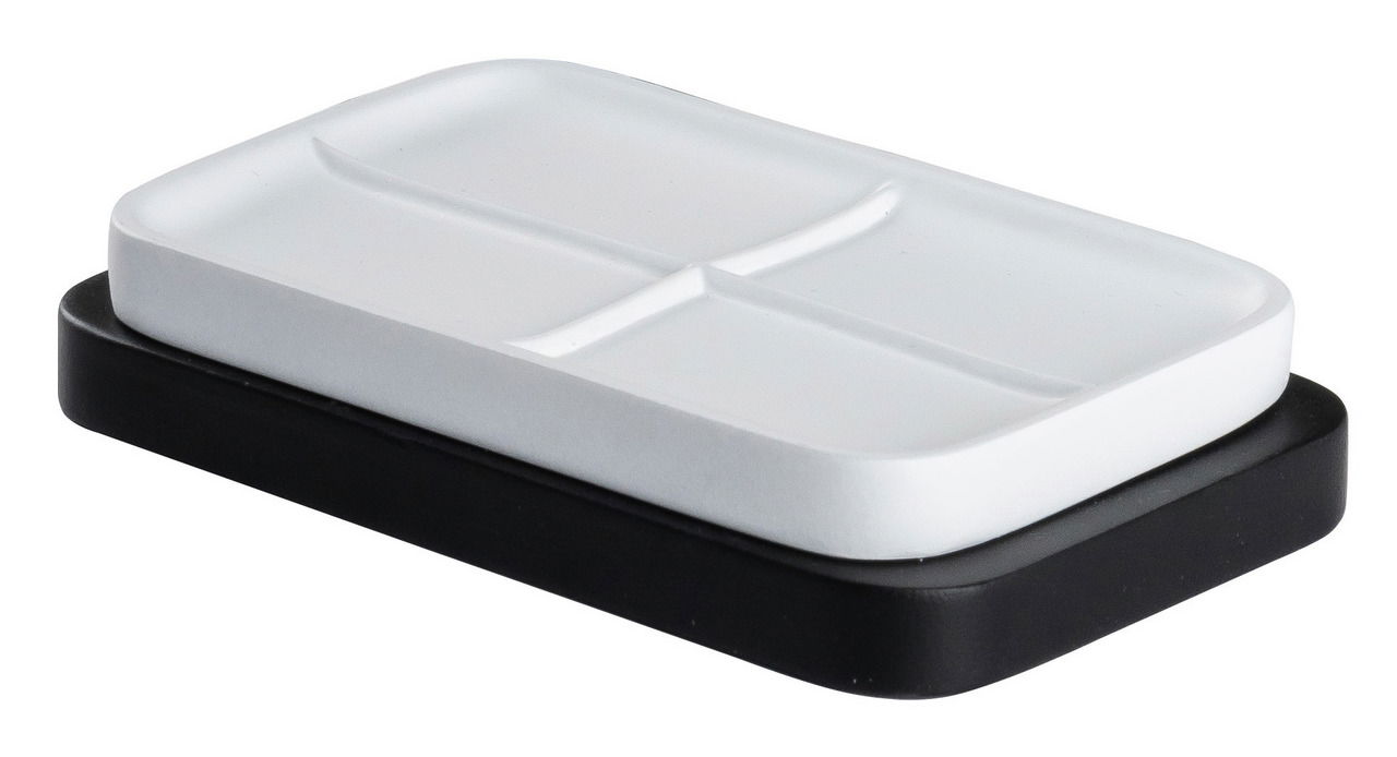Seifenschale AMARA weiss-schwarz – Modernes Design mit Bambusboden