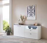 Das Zurbrüggen Sideboard WAVE besticht durch sein elegantes, modernes Design und seine trendige Optik. Die einheitliche Farbgebung in Weiß sorgt für eine zeitlose Ästhetik, die sich mühelos in jedes Interieur einfügt. Ausgestattet mit zwei Drehtüren und zwei Schubladen, bietet das Sideboard ausreichend Stauraum für Ihre persönlichen Gegenstände. Die Kombination aus hochwertiger Holznachbildung und durchdachter Funktionalität macht dieses Möbelstück zu einem stilvollen und praktischen Begleiter in Ihrem Zuhause. Die integrierte Oberbodenbeleuchtung und die LED-Streifenbeleuchtung setzen zusätzliche Akzente und sorgen für eine angenehme Atmosphäre.